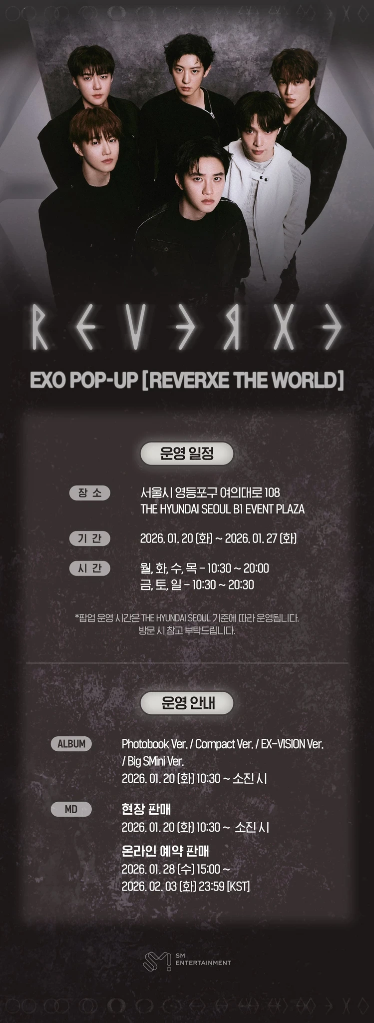 엑소 정규8집 발매를 기념해서 <REVERXE THE WORLD>가 더현대서울에서 열립니다.
